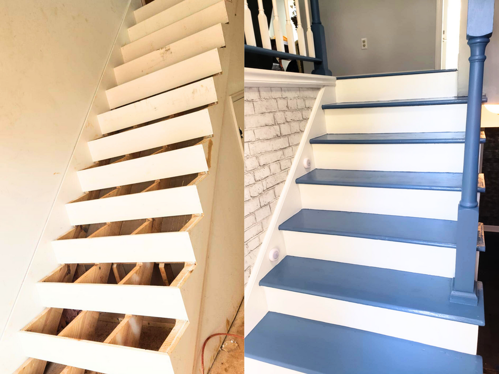 Handcrafted stairs with trim, railings, and modern or traditional styles.