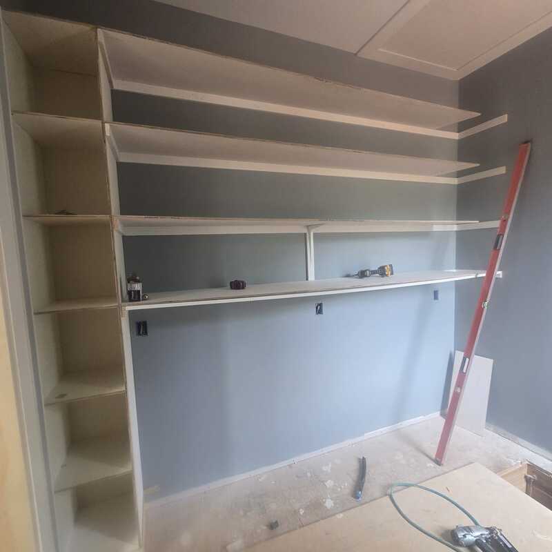 Custom-built shelving units for living rooms, home offices, or entertainment areas.